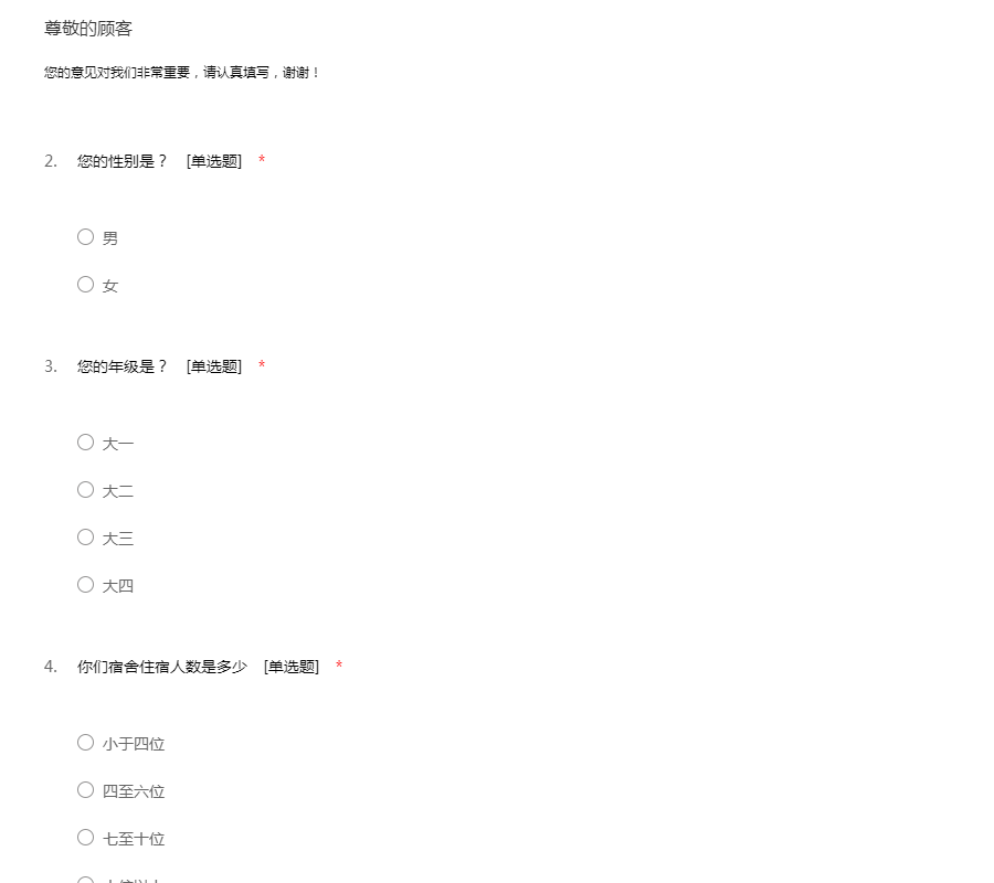 此次调研旨在更全面、真实的反映在当今高校,大学生及校内其他人员对于大学食堂食物浪费、水资源、电资源等的情况、看法以及原因。调查问卷无分对错,您只需要根据自己的情况和想法如实填写。