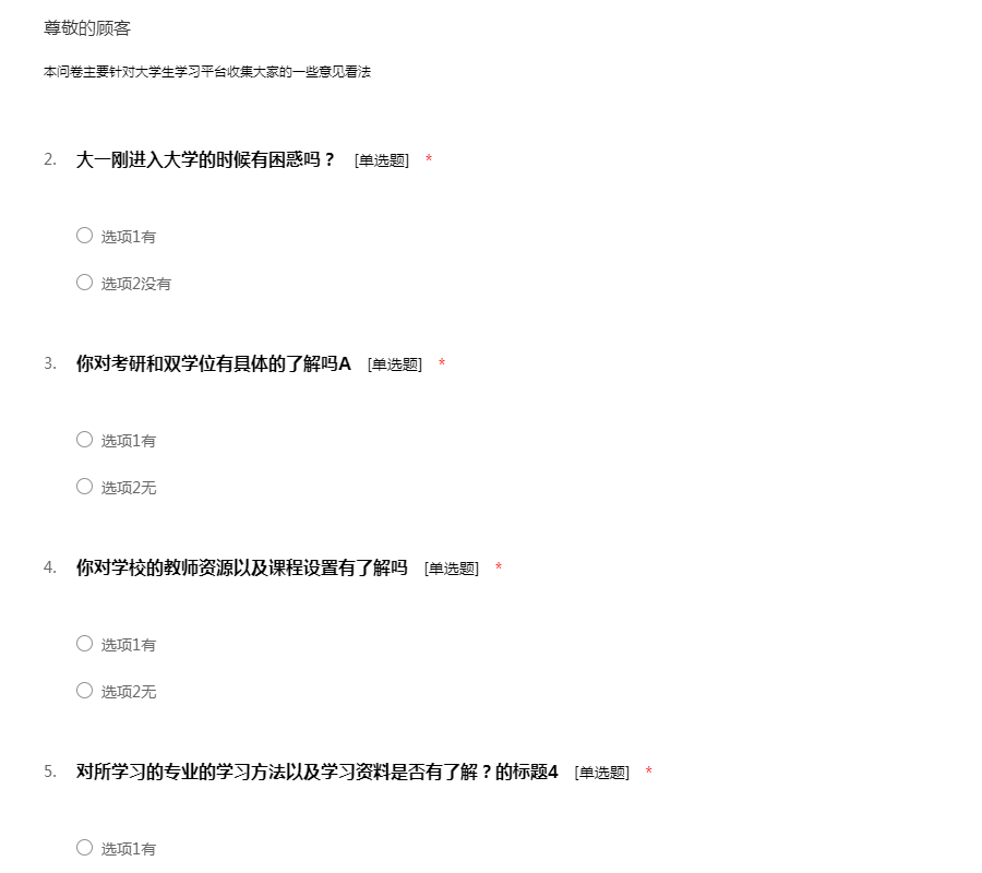 本问卷主要针对大学生学习平台收集大家的一些意见看法