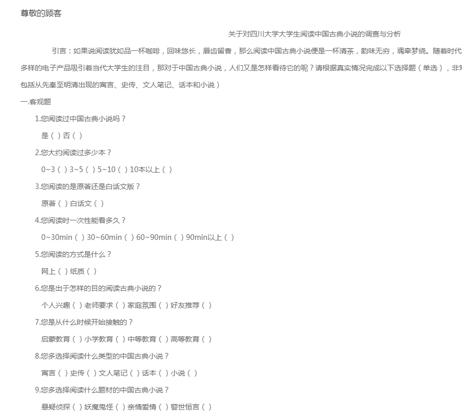 关于对四川大学大学生阅读中国古典小说的调查与分析