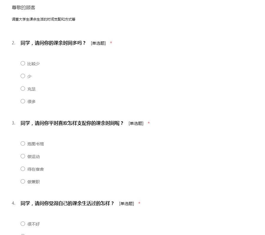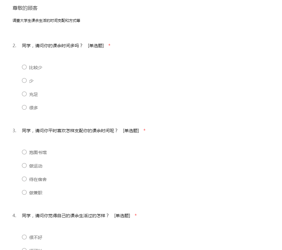 调查大学生课余生活的时间支配和方式等