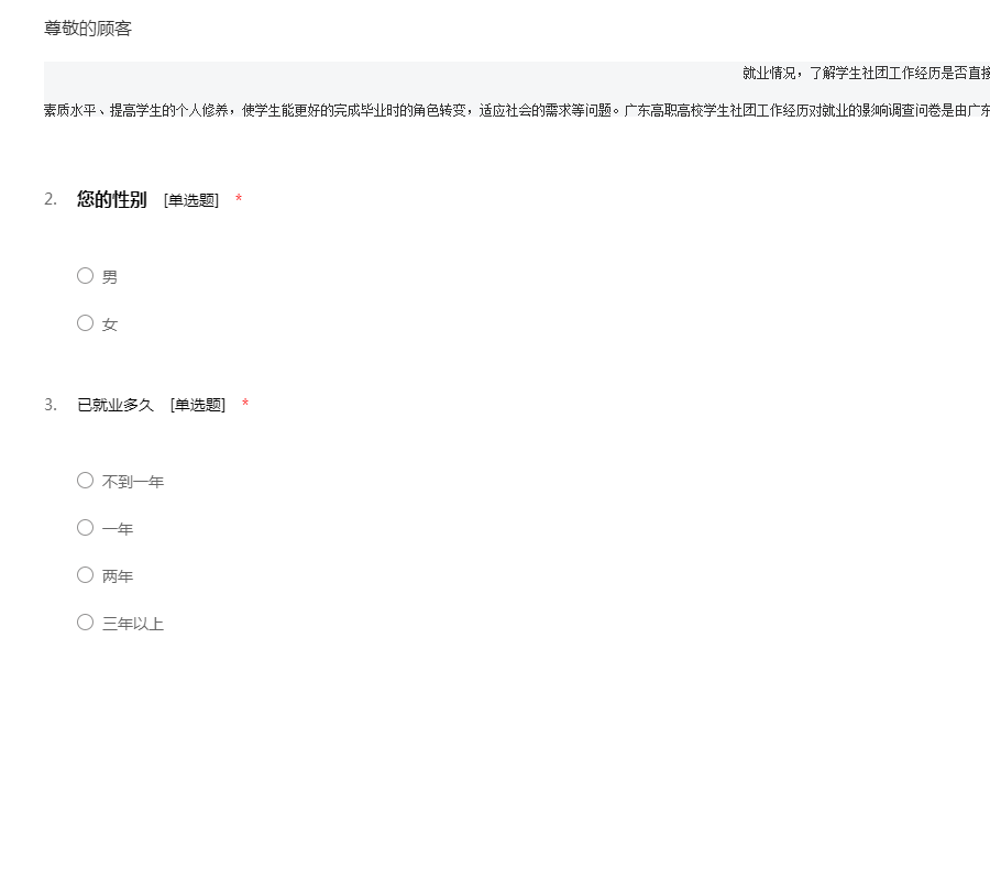 广东高职高校学生社团工作经历对就业的影响调查问卷