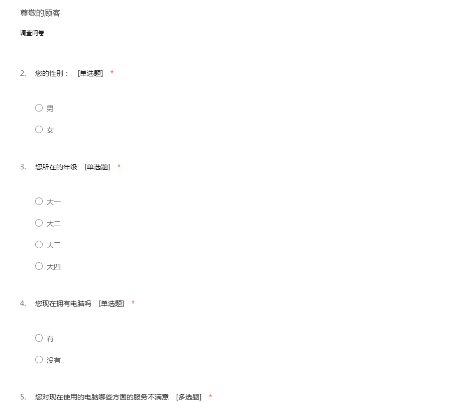 大学生电脑使用情况调差表