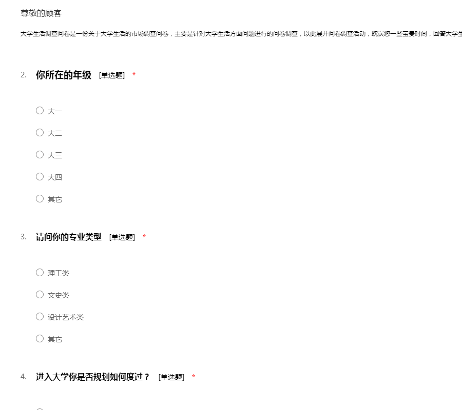 大学生活调查问卷