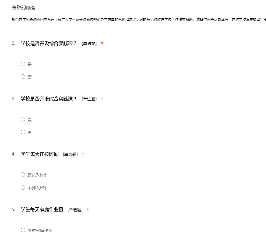 规范办学家长调查问卷