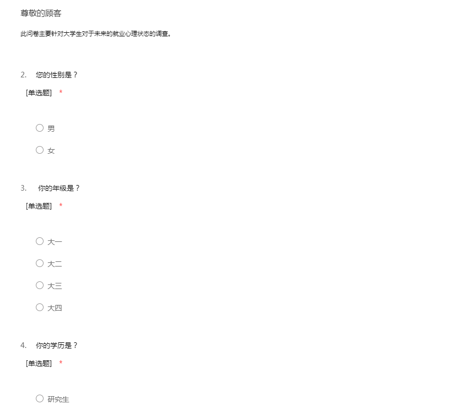 此问卷主要针对大学生对于未来的就业心理状态的调查。