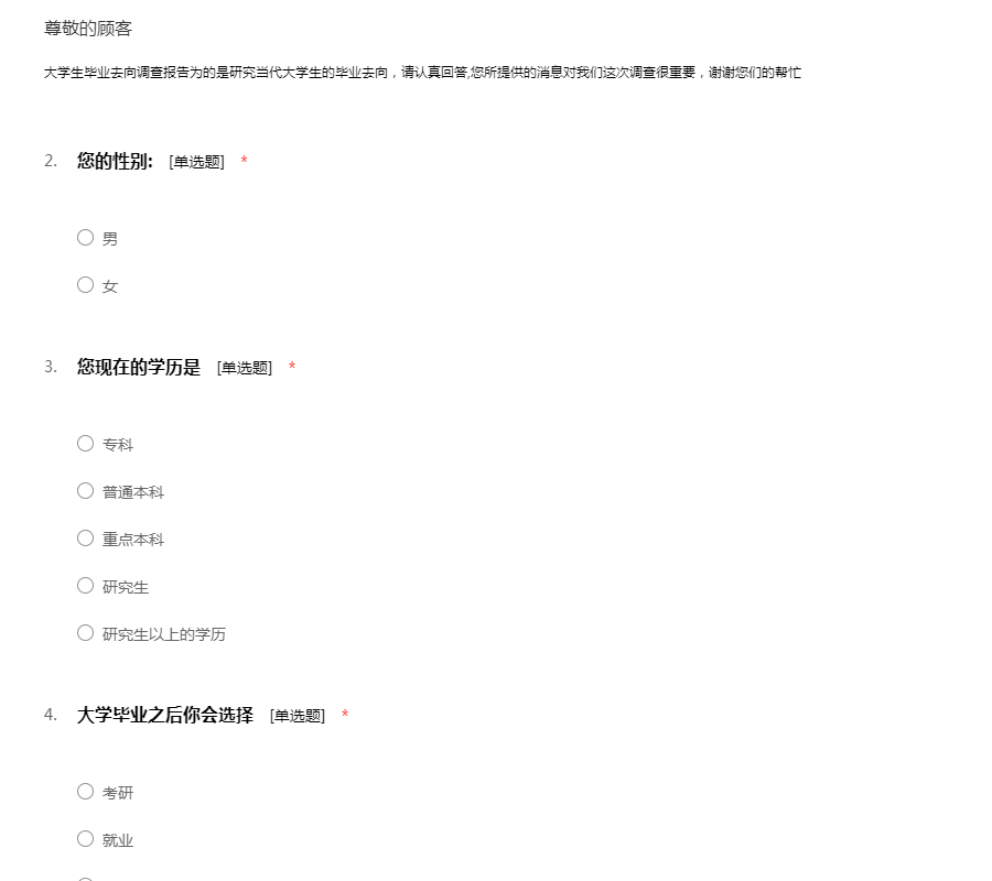 大学生毕业去向调查报告为的是研究当代大学生的毕业去向,请认真回答,您所提供的消息对我们这次调查很重要,谢谢您们的帮忙