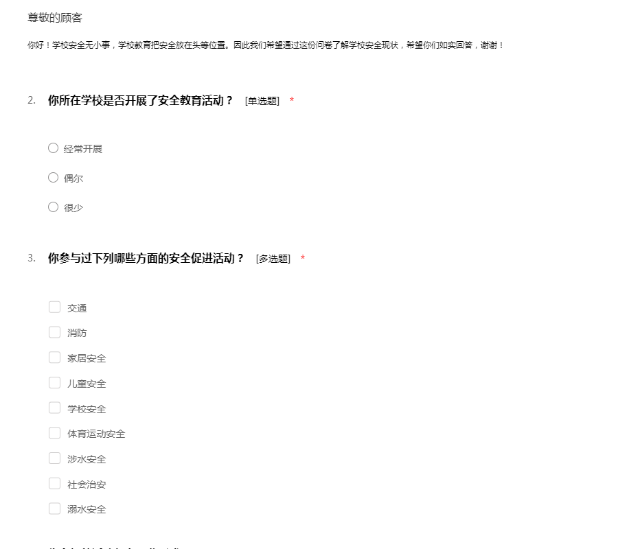学校安全问卷调查