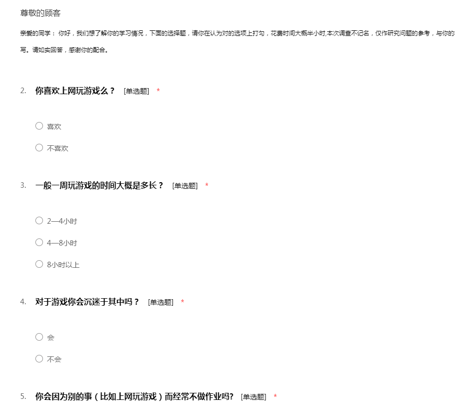高中学生问卷调查