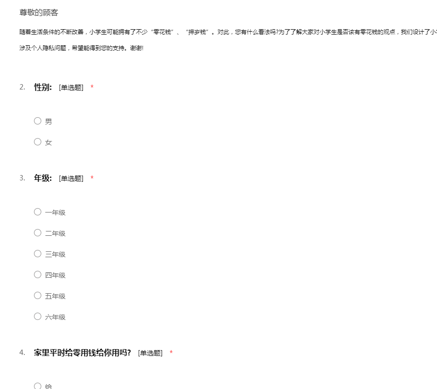 小学生零花钱问卷调查