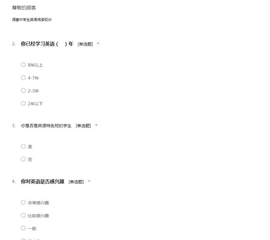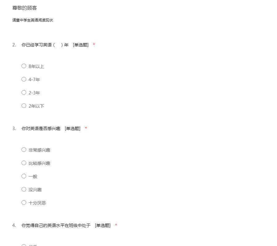 中学生英语阅读现状问卷调查