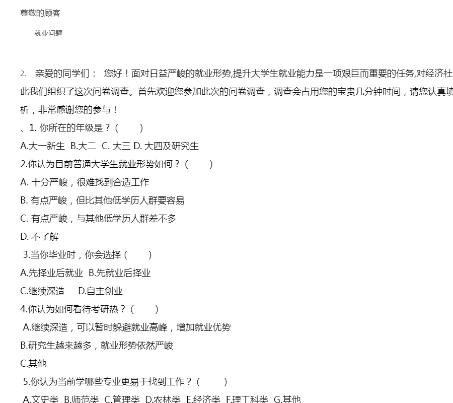 大学生就业问卷调查