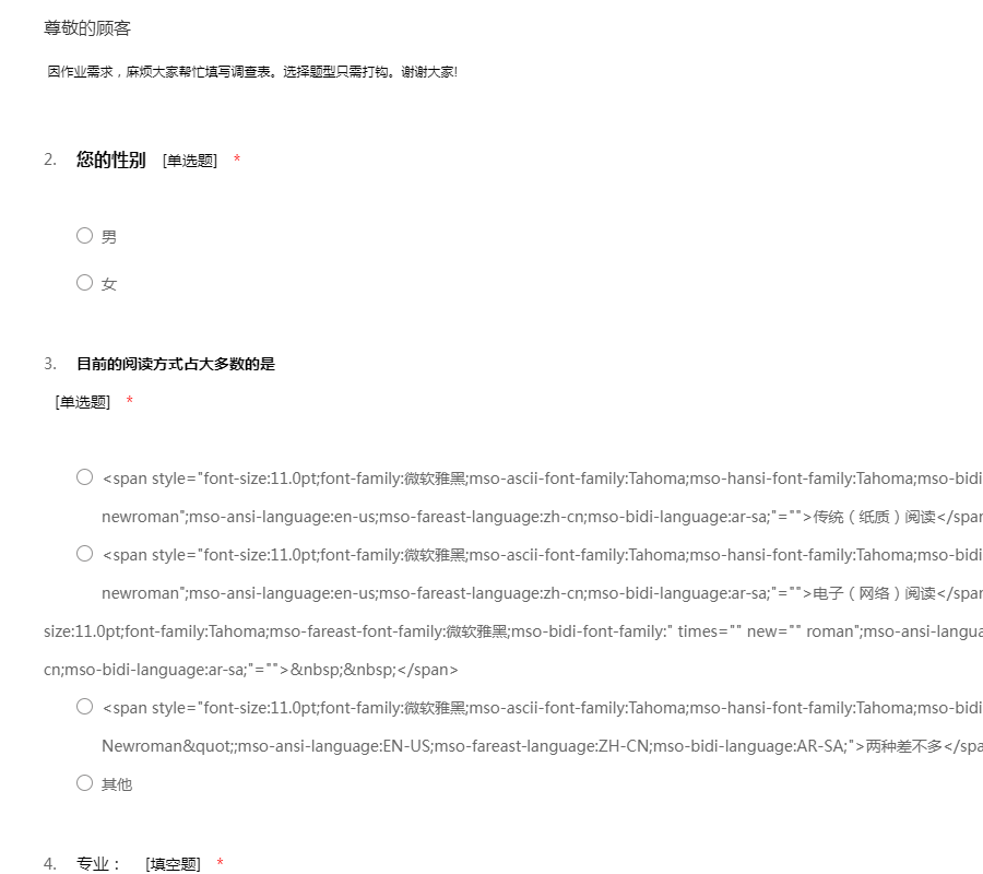因作业需求,麻烦大家帮忙填写调查表。选择题型只需打钩。谢谢大家!