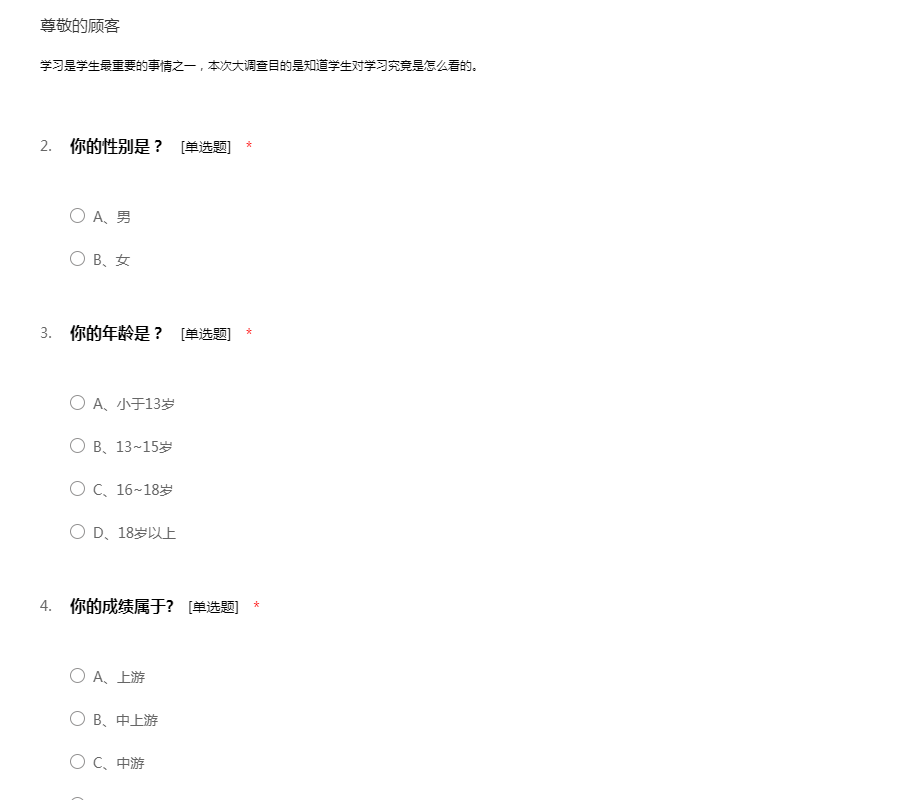 学习是学生最重要的事情之一,本次大调查目的是知道学生对学习究竟是怎么看的。