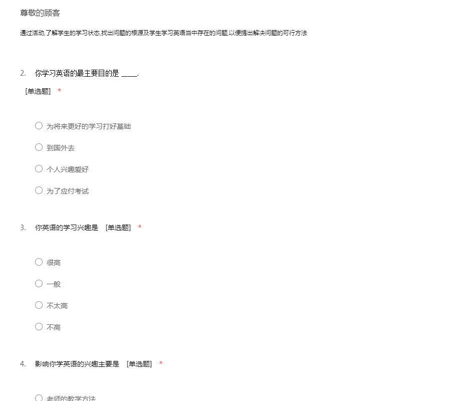 通过活动,了解学生的学习状态,找出问题的根源及学生学习英语当中存在的问题,以便提出解决问题的可行方法