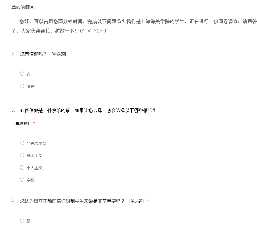 大学生信仰调查问卷