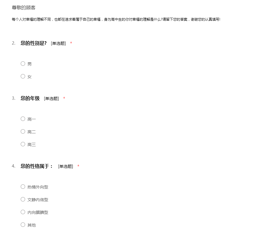 高中学生幸福调查问卷