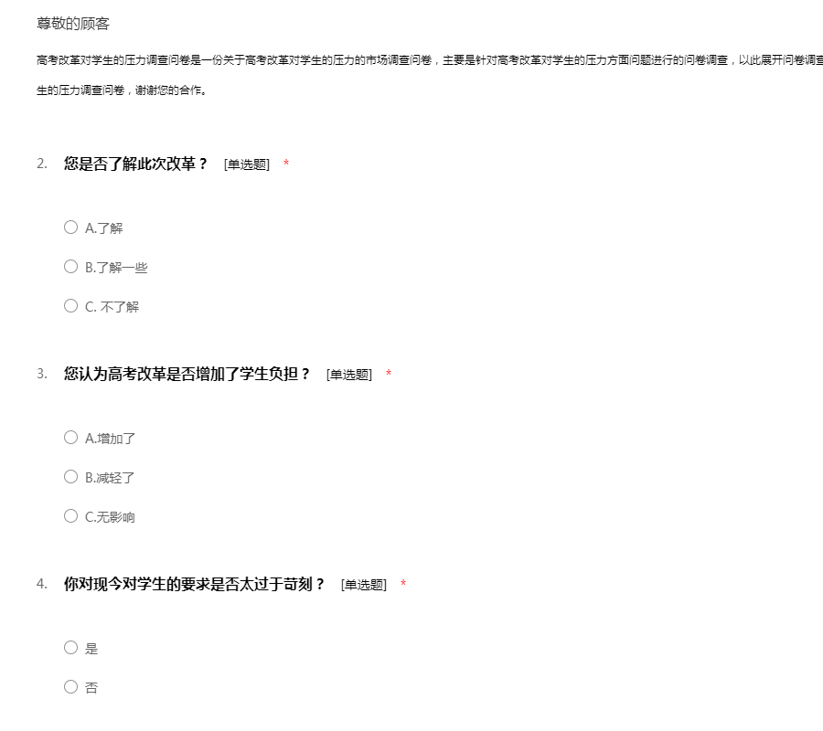 高考改革对学生的压力调查问卷