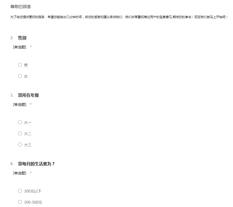 为了给您提供更好的服务,希望您能抽出几分钟时间,将您的感受和建议告诉我们,我们非常重视每位用户的宝贵意见,期待您的参与!现在我们就马上开始吧!