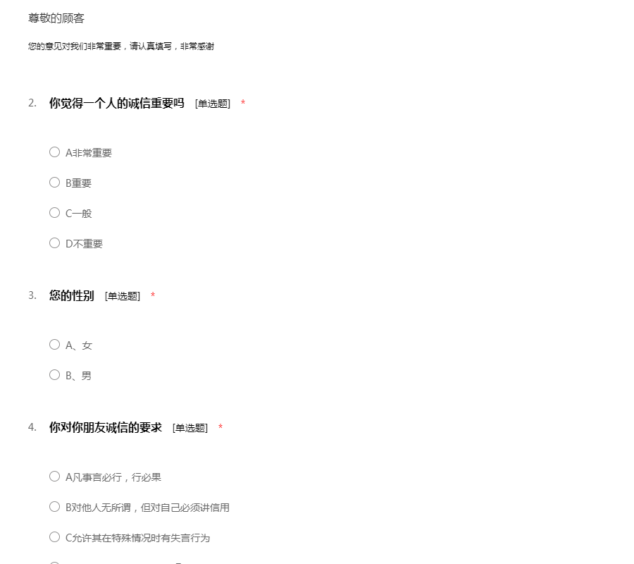 大学生诚信问卷