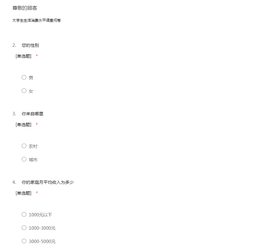大学生消费问卷调查