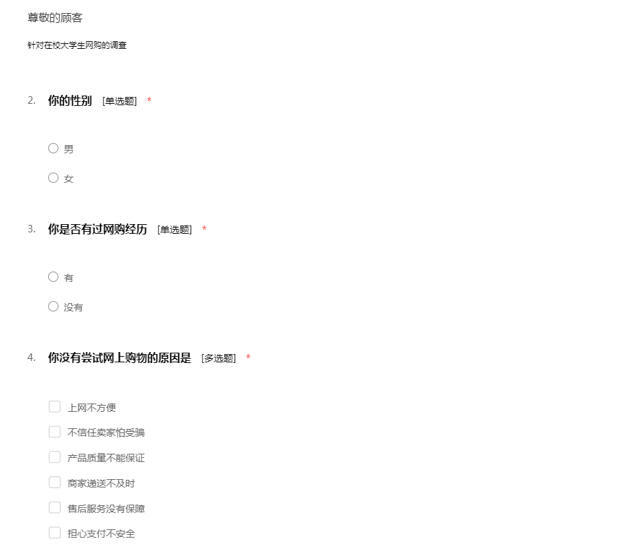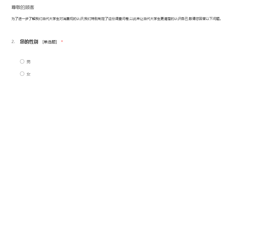 此份问卷是为了调查一下在大学生的消费观,希望您能认真填写问卷,谢谢您的合作!51调查网(我要调查网)谢谢您的参与。