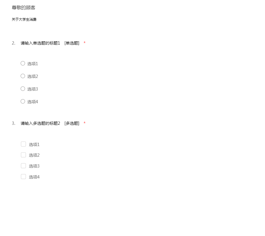 本次大学生消费调查问卷意在了解当代大学生消费的情况,您的真实回答对我们来说十分宝贵!感谢您在百忙之中回答此卷!51调查网(我要调查网)谢谢您的参与。
