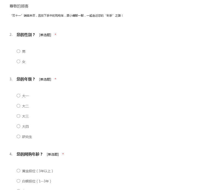 此份问卷是为了调查一下在各大高校学子的消费行为,希望您能认真填写问卷,谢谢您的合作!51调查网(我要调查网)谢谢您的参与。
