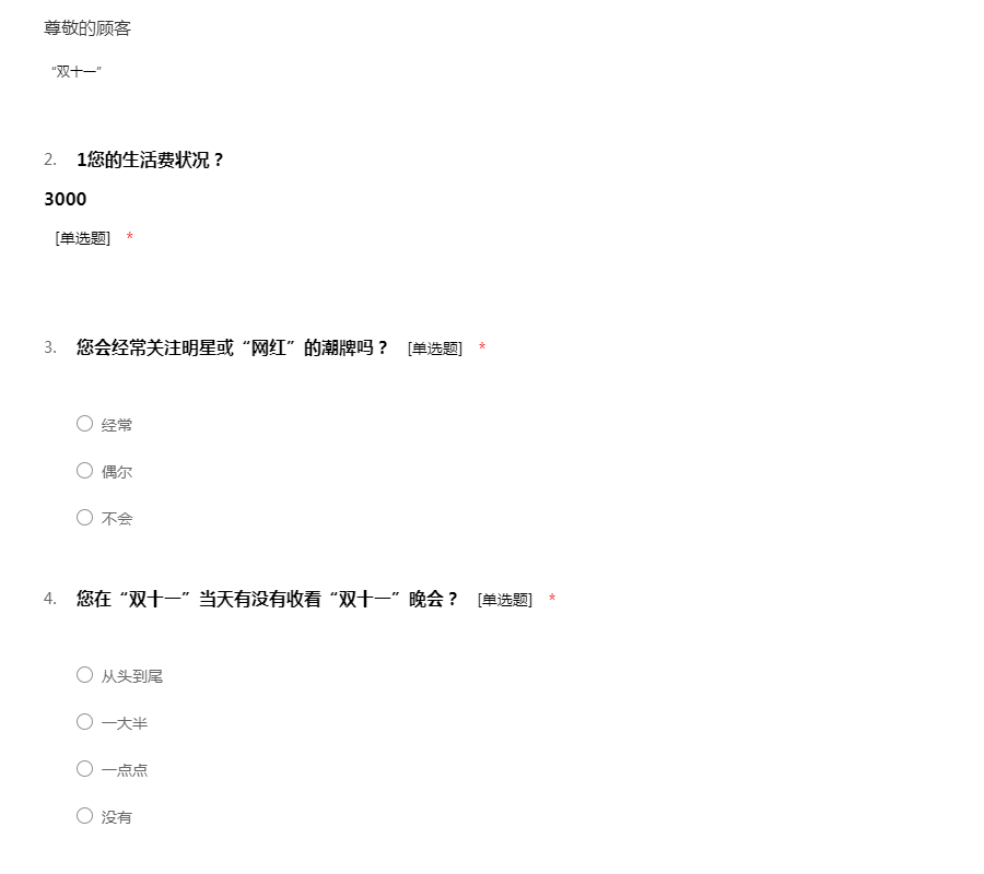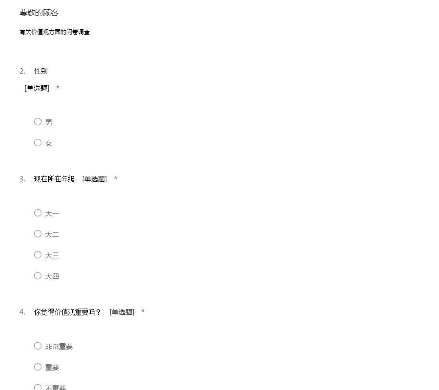 有关价值观方面的问卷调查