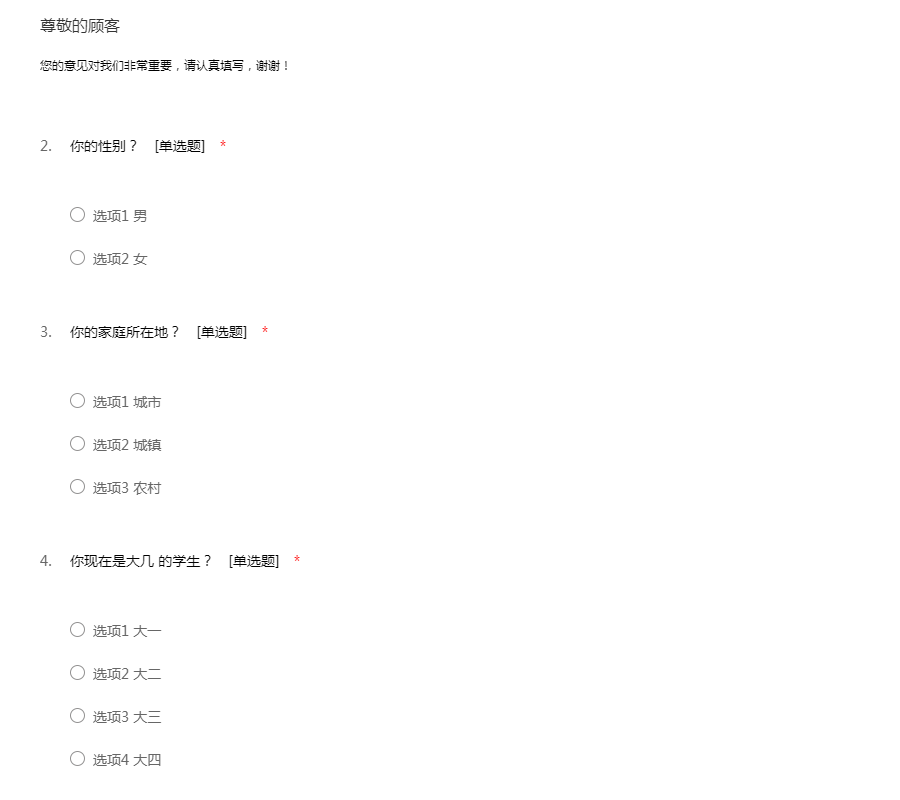 您的意见对我们非常重要,请认真填写,谢谢!