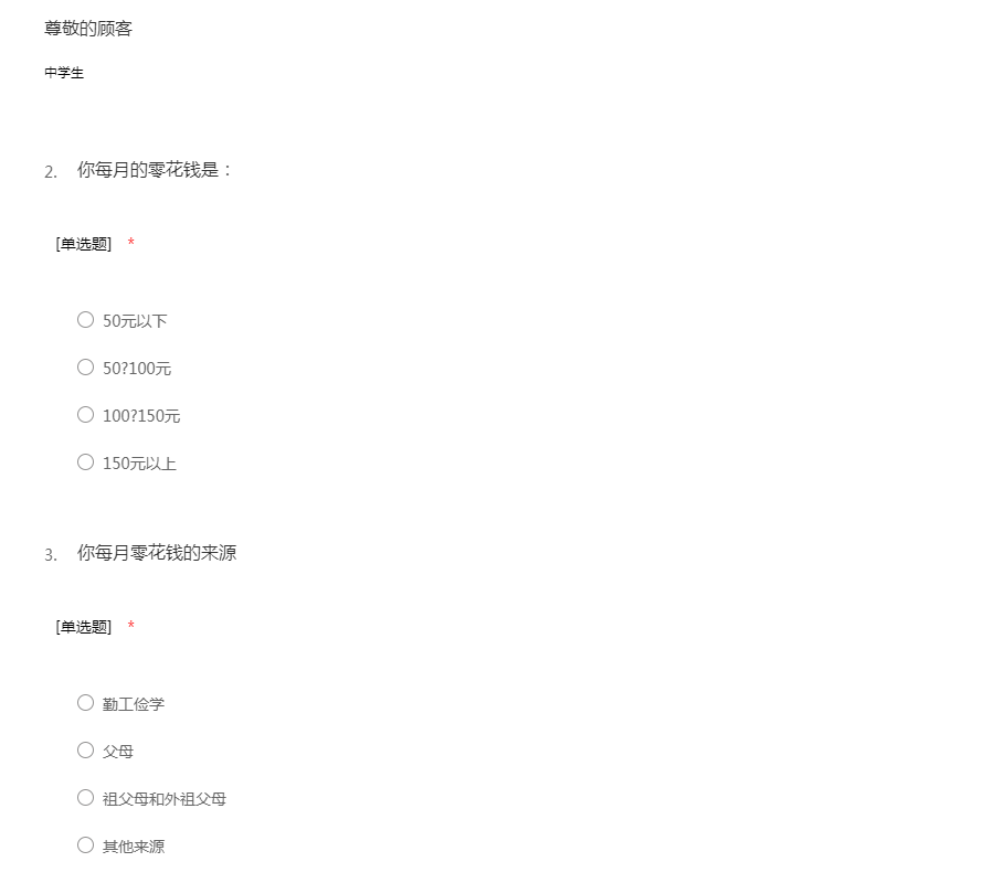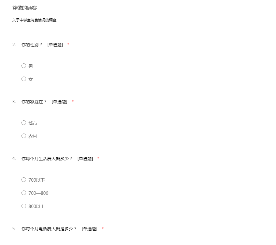 中学生消费情况调查