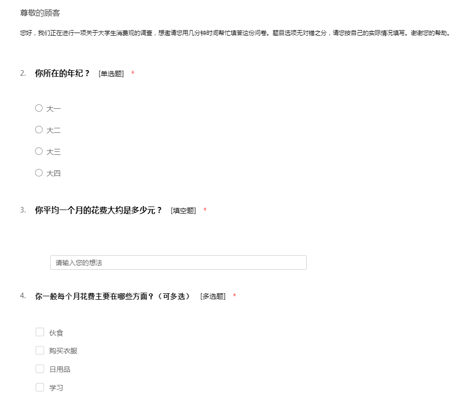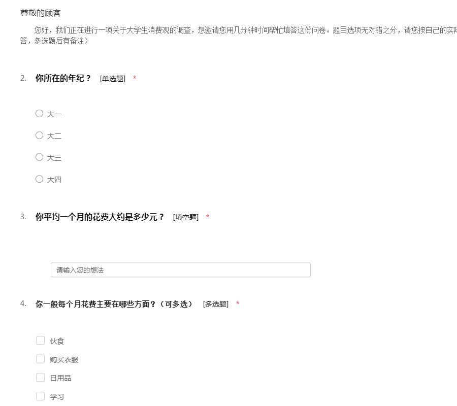 大学生消费问卷调查