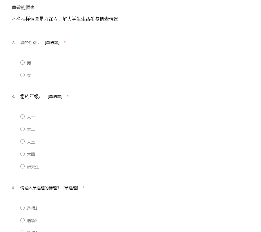 此份问卷是为了调查一下在各大高校学子的消费行为,希望您能认真填写问卷,谢谢您的合作!51调查网(我要调查网)谢谢您的参与。