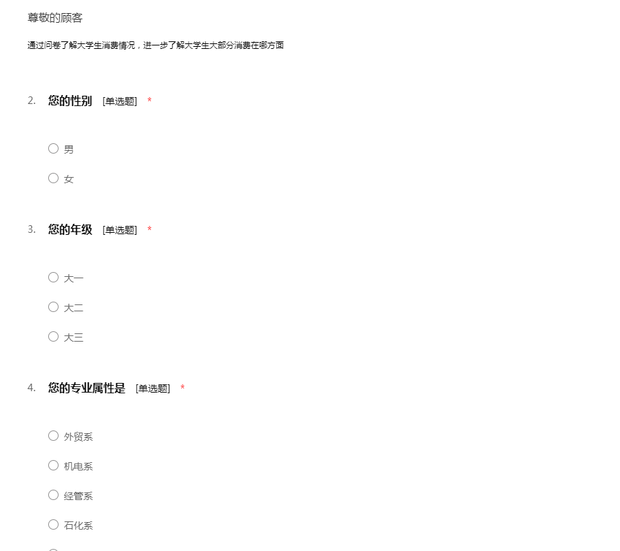 关于大学生消费调查问卷