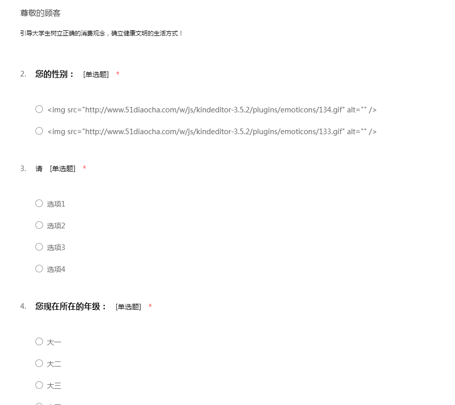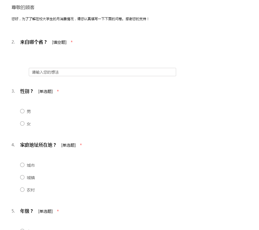 此份问卷是为了调查一下在各大高校学子的消费行为,希望您能认真填写问卷,谢谢您的合作!51调查网(我要调查网)谢谢您的参与。
