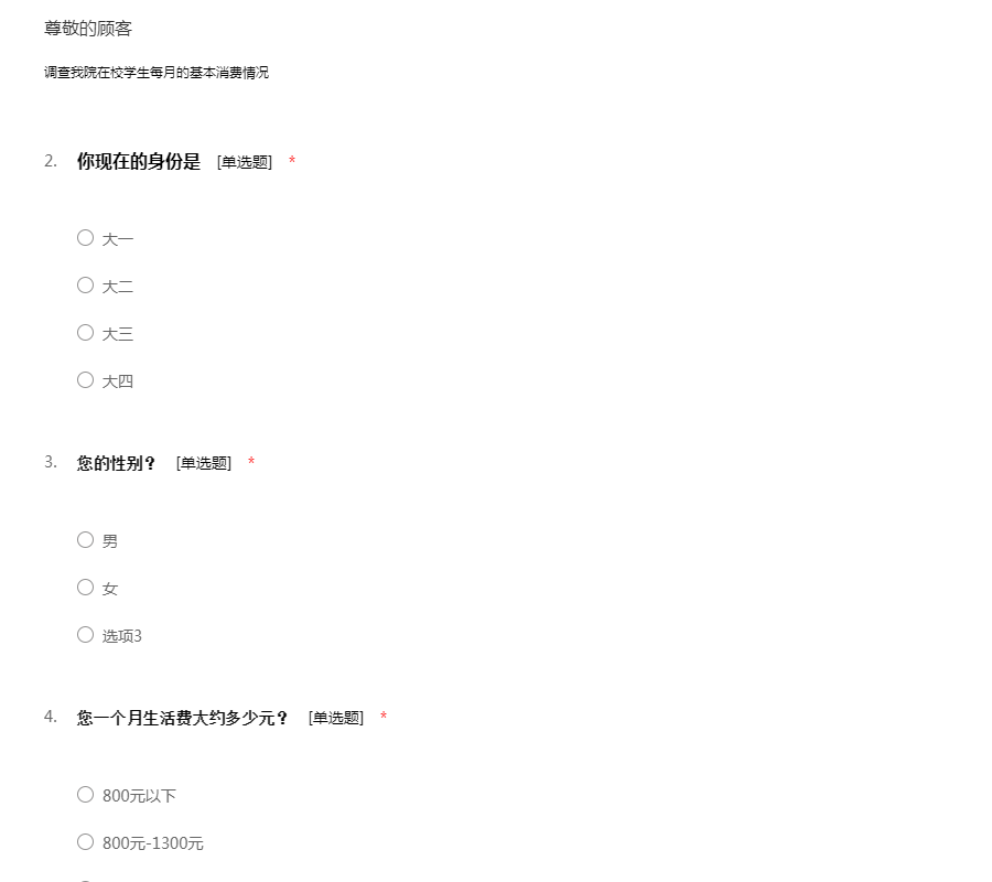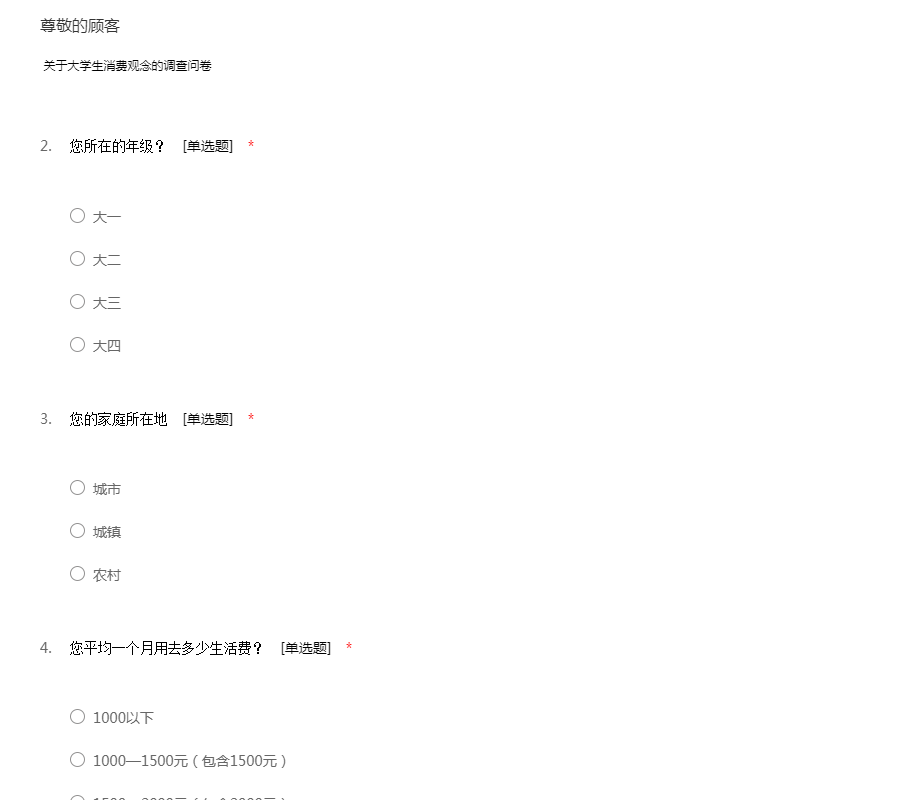 关于大学生消费调查问卷