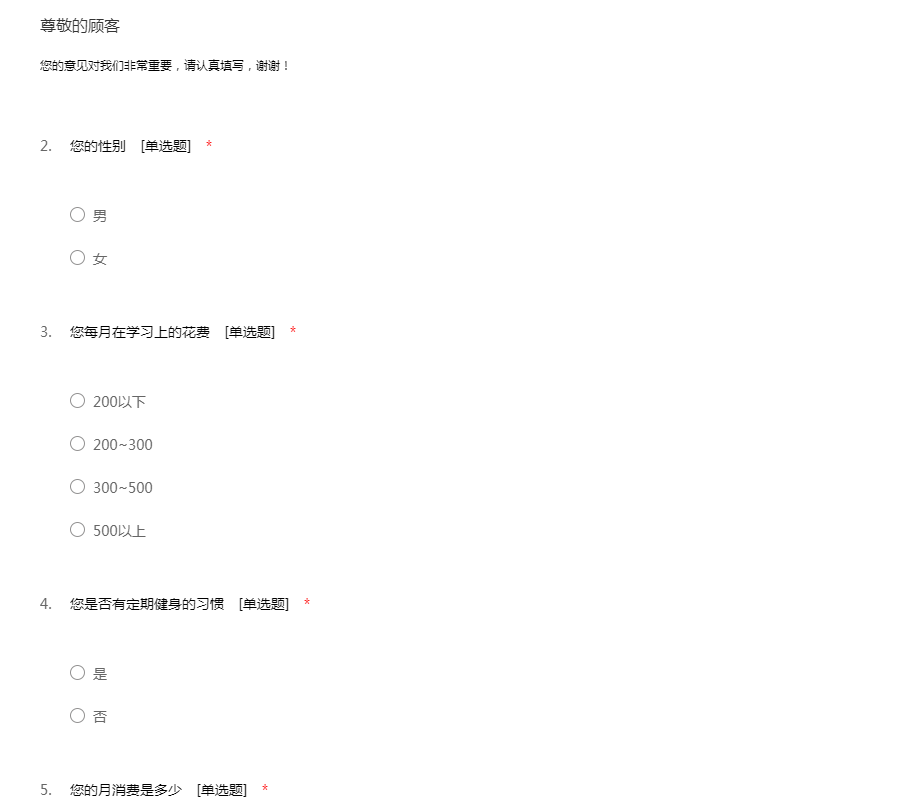 以下是我的一次调研活动调查问卷,您提供的答案将是我们宝贵的材料。举手之劳谢谢您!