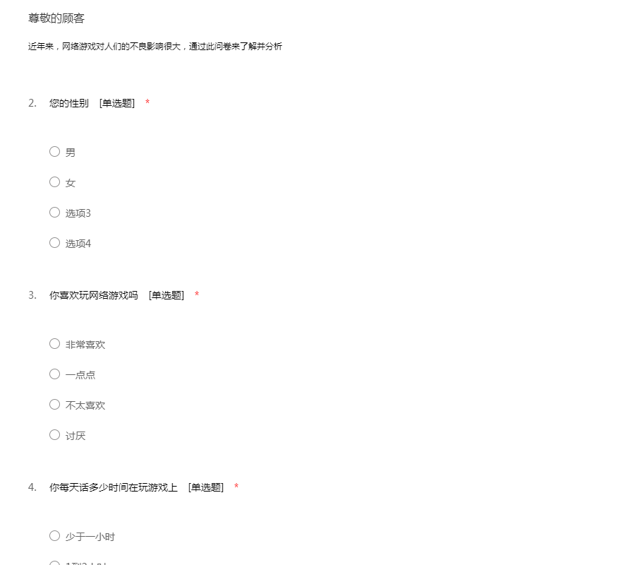 近年来,网络游戏对人们的不良影响很大,通过此问卷来了解并分析