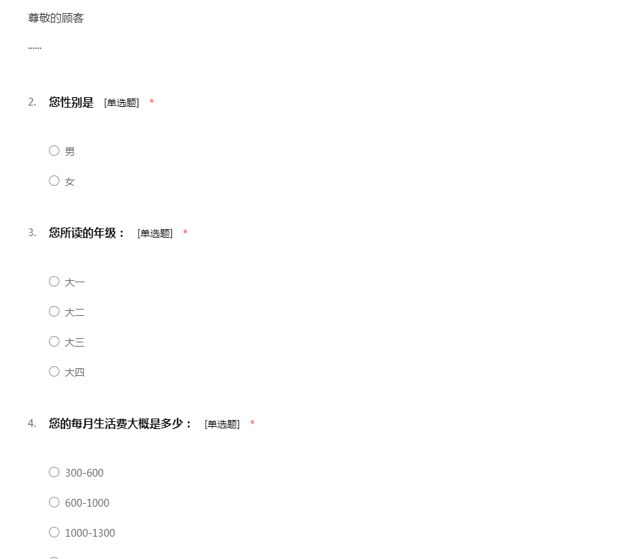 3. 您的回答将无所谓好坏对错,请务必如实填写。