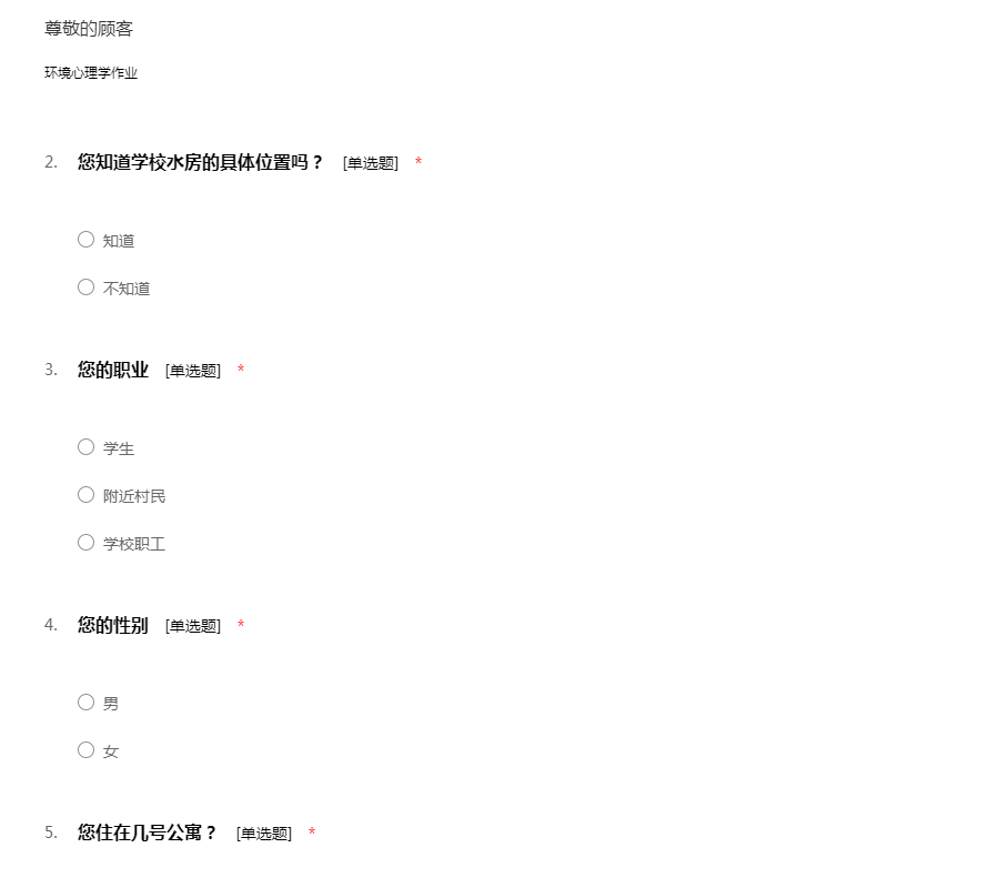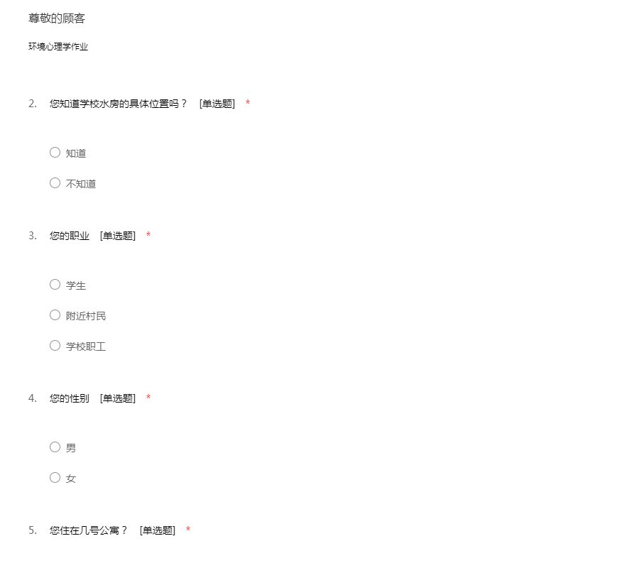 学校后勤房屋问卷调查