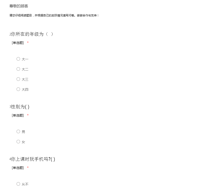 大学生上课使用手机问卷调查