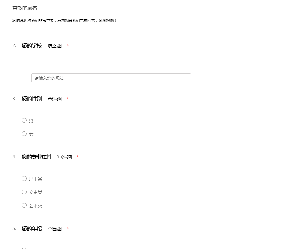 您的意见对我们非常重要,麻烦您帮我们完成问卷,谢谢您哦!