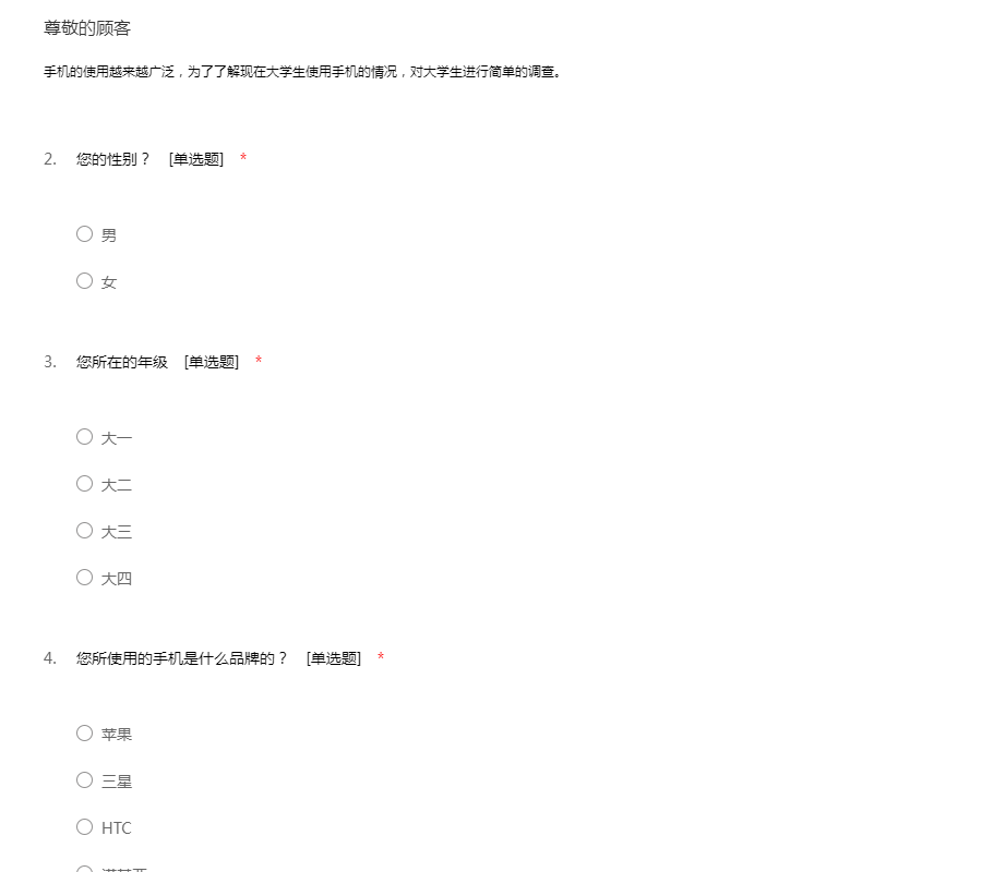 亲爱的同学,你好!为了更好的了解大学生对手机消费的需求,我们特地展开了此次调查活动。希望你在百忙之中抽出一点宝贵的时间,协助我们完成以下这份调查问卷。感谢你的合作!