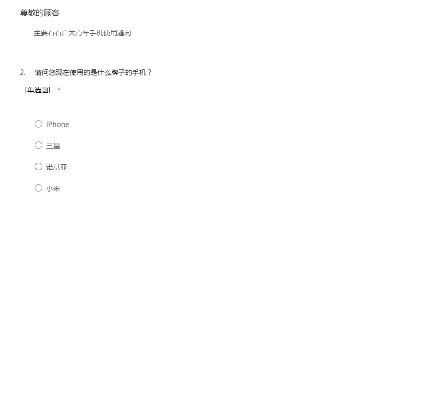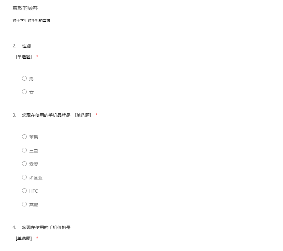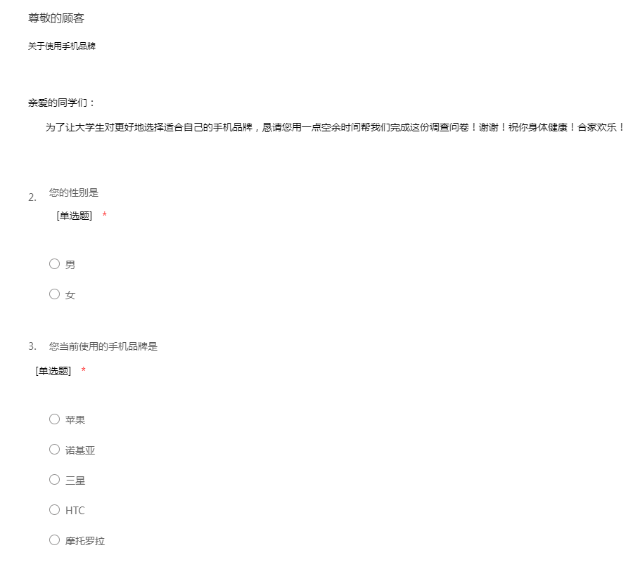 您好,我们正在进行一项关于大学生手机的市场问卷调查,可以耽误您几分钟时间回答一下问卷吗?感谢您的支持与配合。