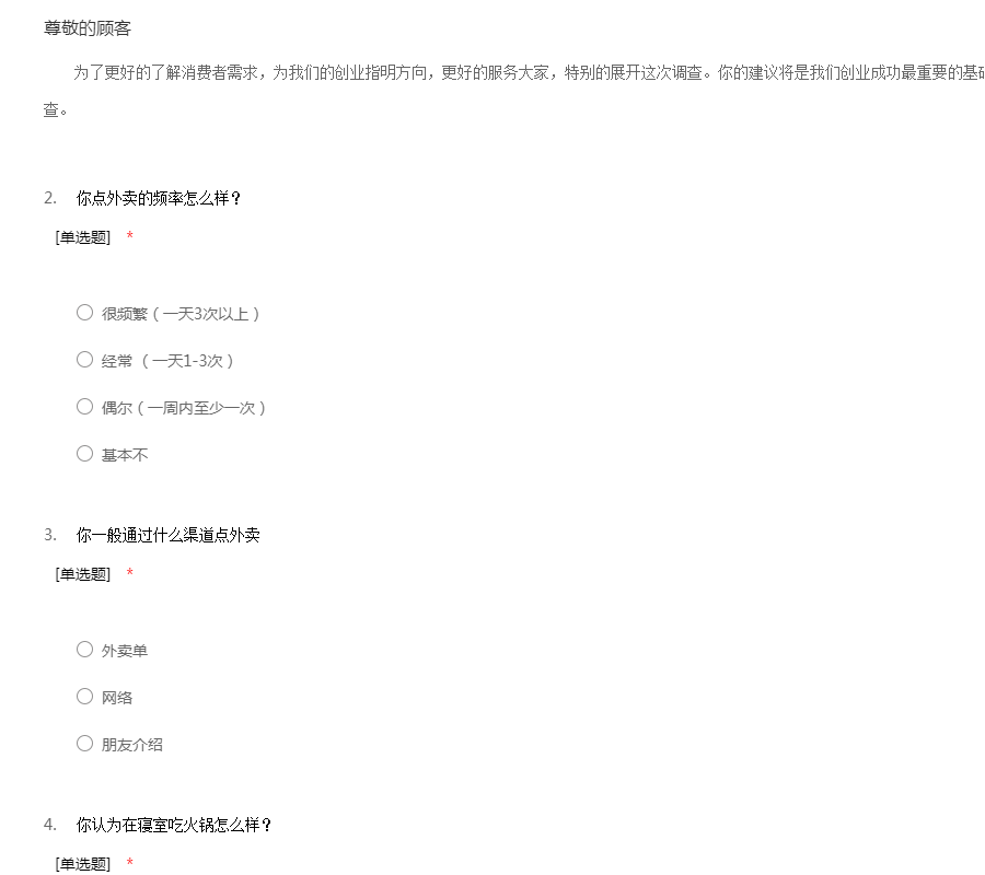 为了更好的了解消费者需求,为我们的创业指明方向,更好的服务大家,特别的展开这次调查。你的建议将是我们创业成功最重要的基础,感谢你抽出时间来填写这份问卷调查。