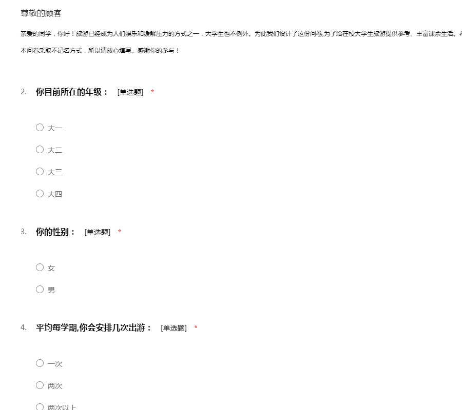 A 随旅行社 B 自助游 C 班级或社团组织 D 其他