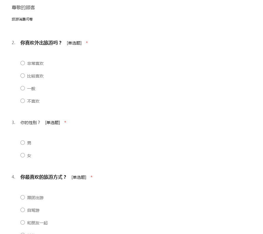 旅游市场问卷调查