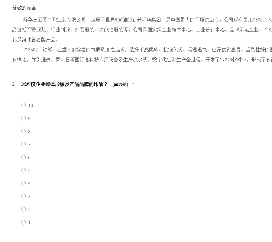际华三五零二职业装有限公司,隶属于世界500强的新兴际华集团,是中国最大的军服供应商。公司现有员工3600余人,年产各类服装1500万套(件),产品包括军警服装、行业制服、外贸服装、功能性服装等。公司是国家级企业技术中心、工业设计中心、品牌示范企业。“3502”商标是中国驰名商标,3502衬衫是河北省名牌产品。