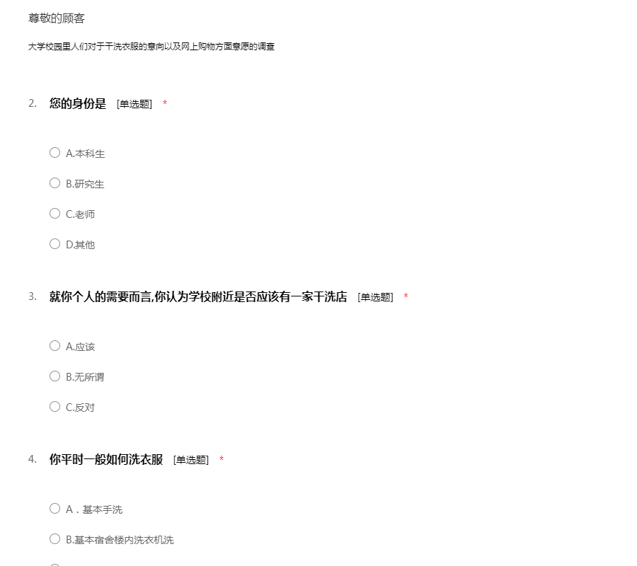 大学校园里人们对于干洗衣服的意向以及网上购物方面意愿的调查