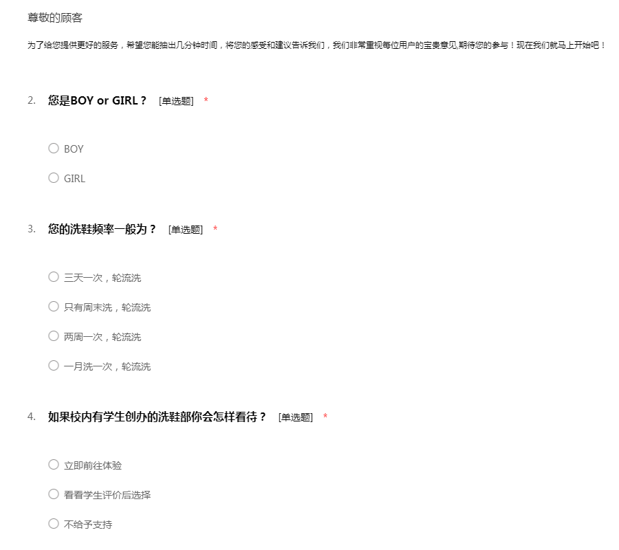 您好,诚挚的邀请您参与做一份问卷,我们正在进行一项关于今年潮流服装调查问卷,希望您能在百忙中抽出一点宝贵的时间答一份问卷,非常感谢您能参与我们的问卷调查。