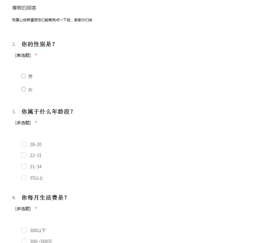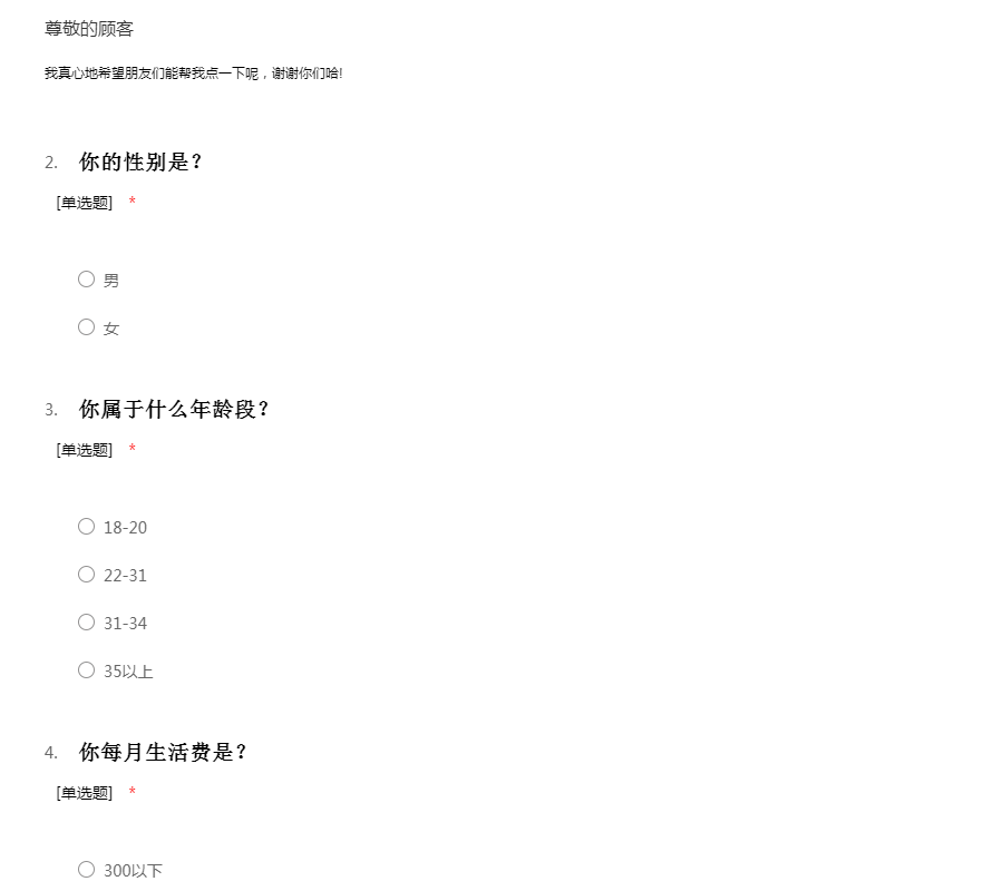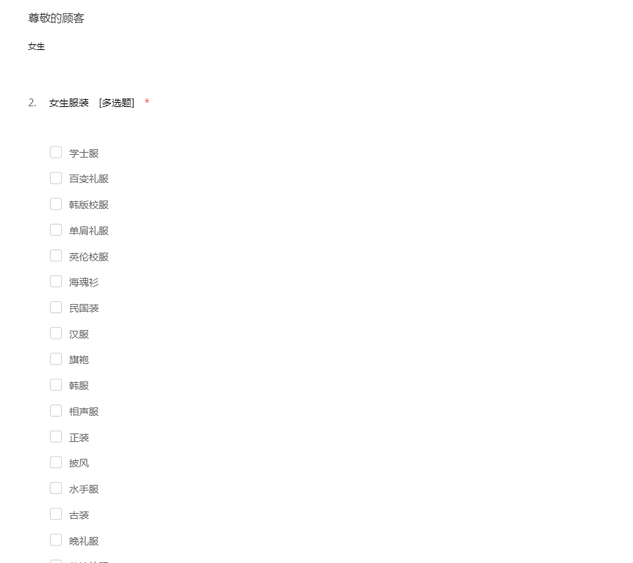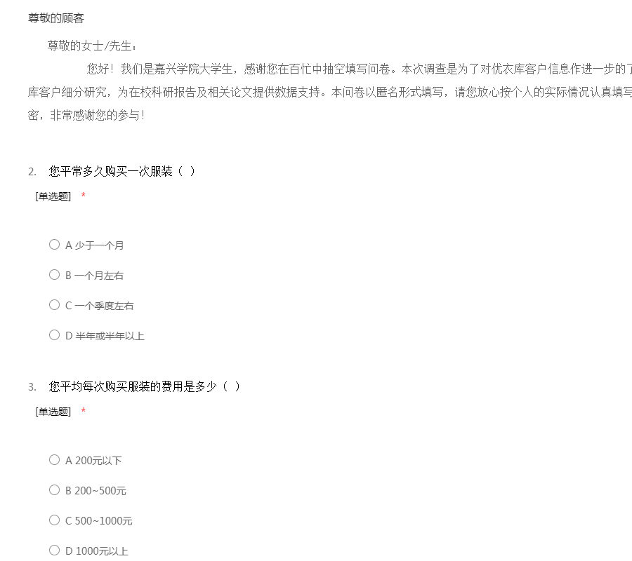 信誉楼市场女装问卷调查